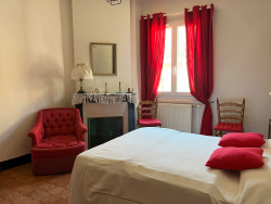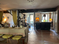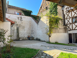 Maison d'amis : Pièce à vivre de 29m2 avec salle de bain/WC et à l'étage chambre de 16m2. Double garage Cave L'ensemble sur une parcelle de 405m2. Poutres, tomettes et colombages agrémentent cette jolie demeure de charme. La maison est équipée d'une chaudière à gaz de ville, radiateurs électriques inerties, double vitrage et du raccordement au tout à l'égout.