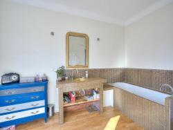 Le premier étage propose deux chambres dont l'une intègre un espace bureau/dressing. Une grande salle de bain équipée d'une douche et d'une baignoire assure confort et bien-être, complétée par un WC séparé.
