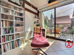 Situé au coeur du Vignoble dans le centre historique de BARR, nous vous proposons de découvrir ce spacieux appartement atypique en duplex de plus de 130 m² au sol avec TERRASSE alliant charme et caractère.