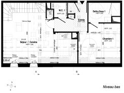 - 1er niveau : Séjour double hauteur de 31,2m2 utiles, Chambre parentale avec salle d'eau douche attenante (14,9+7,4m2 utiles), wc séparé, entrée. - Etage : Vide sur séjour, deux très belles chambres de 22 et 15m2 utiles, Salle d'eau douche 6m2, wc séparé, placards.