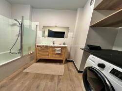 - une salle de bains entièrement rénovée avec douche et machine à laver