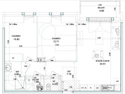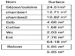Spacieux T3 au dernier étage : Séjour, balcon, entrée, cellier, salle d'eau douche à l'italienne, wc séparé. Deux chambres de 10,82 et 12,71m2 ( + sous pentes). Garage inclus.