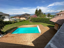 Venez découvrir sur la commune de Messery, cette superbe villa bâtie en 2003 d'une surface de 151 22 habitables, sur un terrain de 1 188 m2. Au rez-de-chaussée, un hall donnant sur une grande pièce de vie très lumineuse avec sa cuisine ouverte, salon, salle à manger avec cheminée, donnant sur une magnifique terrasse de 120 m2 face à la piscine. Une chambre parentale avec dressing et salle de bains complètent ce niveau. A l'étage, une mezzanine pouvant être tranformée en chambre ou bureau, deux chambres avec balcon vue sur le Lac, une salle de bains. Au sous-sol, une grande cave, une salle pouvant faire office de salle de jeux ou salle de sport, un garage double. Le chauffage avec pompe à chaleur et climatisation réversible vous apportera un confort et un coût raisonnable au niveau énergetique, ainsi que l'installation de panneaux photovoltaiques, effectuée dernièrement. Contact : t.chapelon@ikami.fr - Annonce rédigée et publiée par un Agent Mandataire -