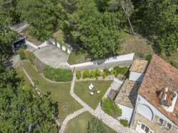 À l'extérieur, cette villa est entourée d'un vaste terrain paysager offrant intimité et tranquillité. Le jardin paysager accueille une grande piscine à débordement, un véritable havre de fraîcheur et de détente durant les chaudes journées estivales. Vous pourrez vous prélasser au soleil sur les chaises longues et sous les parasols mis à disposition. De plus, un court de tennis privé offre une vue panoramique imprenable sur les environs, vous permettant de pratiquer votre jeu tout en profitant de votre séjour.