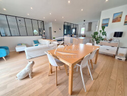 Cette maison de plain-pied propose une spacieuse et lumineuse pièce de vie de plus de 40 m² avec cuisine américaine aménagée et équipée, un cellier/buanderie attenant offrant ainsi un côté pratique et fonctionnel au quotidien. Vous apprécierez également son bureau semi ouvert pouvant servir de salle de jeux ou de bibliothèque. L'espace nuit se compose de 3 chambres, dont une suite parentale avec salle d'eau, ainsi qu'une salle de bains indépendante et un WC séparé.