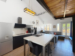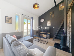 Maison rénovée avec goût style moderne et prestations de qualité Découvrez cette maison entièrement rénovée et décorée dans un style moderne, offrant des espaces fonctionnels et chaleureux : Cuisine contemporaine entièrement équipée avec îlot central, ouverte sur un bel espace de vie convivial. Salon cosy avec son coin TV et une mezzanine aménagée en bureau, agrémentée d'un canapé. Salle d'eau moderne avec douche à l'italienne, sèche serviette et WC. Deux chambres confortables, chacune équipée de la climatisation, dont une avec dressing.