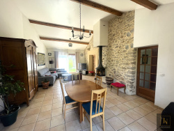 St Herblain. En impasse proche du bourg. Vie de plain pied, volume, charme et luminosité pour cette belle maison de plus de 140 m2. Dans un environnement calme cette jolie propriété en bon état comprend, au rez-de-chaussée, une entrée, un beau salon-séjour traversant avec mur en pierre apparente, très belle hauteur sous plafond et poêle à bois. Une cuisine dinatoire séparée, aménagée et équipée de plus de 15m2. Ce vaste espace de vie donnant sur une terrasse carrellée et sur un beau jardin clos, arboré et sans vis à vis ou l'on peut profiter du soleil couchant. Un dégagement avec placard dessert 2 chambres dont une avec placard, une salle d'eau et un Wc indépendant. A l'étage un pallier dessert 3 autres chambres et une salle de bain avec Wc (neuve). Deux grands garages, un atelier avec accès au jardin et un 3 ème Wc complètent ce bien rare sur le secteur. Maison confortable avec chauffage au sol par pompe à chaleur ( air/eau ), huisserie de qualité en bois exotique double vitrage, fibre optique. très belle parcelle de plus de 1000 m2. Stationnement facile sur la parcelle. Transports en communs ( ligne 93, 71 et tram ligne 1 ) à 5 minutes. Toutes les commodités du bourg de St herblain ( écoles, collèges, commerces) et Atlantis en 5 minutes. Le cadre bucolique et le calme de la campagne avec les commodités à proximité. Une visite s'impose. Contactez-moi Julien Delanoë au 06.62.17.78.80 Inscrit au RSAC de Nantes sous le No 827878901 agissants sous le statut d'agent commercial pour le compte d'Immo Nantes. Réf : 2214 : honoraires inclus à la charge de l'acquéreur : 3.85% 'Les informations sur les risques auxquels ce bien est exposé sont disponibles sur le site Géorisques : www.georisques.gouv.fr'