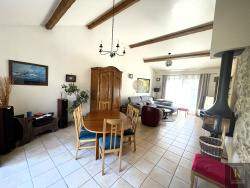 St Herblain. En impasse proche du bourg. Vie de plain pied, volume, charme et luminosité pour cette belle maison de plus de 140 m2. Dans un environnement calme cette jolie propriété en bon état comprend, au rez-de-chaussée, une entrée, un beau salon-séjour traversant avec mur en pierre apparente, très belle hauteur sous plafond et poêle à bois. Une cuisine dinatoire séparée, aménagée et équipée de plus de 15m2. Ce vaste espace de vie donnant sur une terrasse carrellée et sur un beau jardin clos, arboré et sans vis à vis ou l'on peut profiter du soleil couchant. Un dégagement avec placard dessert 2 chambres dont une avec placard, une salle d'eau et un Wc indépendant. A l'étage un pallier dessert 3 autres chambres et une salle de bain avec Wc (neuve). Deux grands garages, un atelier avec accès au jardin et un 3 ème Wc complètent ce bien rare sur le secteur. Maison confortable avec chauffage au sol par pompe à chaleur ( air/eau ), huisserie de qualité en bois exotique double vitrage, fibre optique. très belle parcelle de plus de 1000 m2. Stationnement facile sur la parcelle. Transports en communs ( ligne 93, 71 et tram ligne 1 ) à 5 minutes. Toutes les commodités du bourg de St herblain ( écoles, collèges, commerces) et Atlantis en 5 minutes. Le cadre bucolique et le calme de la campagne avec les commodités à proximité. Une visite s'impose. Contactez-moi Julien Delanoë au 06.62.17.78.80 Inscrit au RSAC de Nantes sous le No 827878901 agissants sous le statut d'agent commercial pour le compte d'Immo Nantes. Réf : 2214 : honoraires inclus à la charge de l'acquéreur : 3.85% 'Les informations sur les risques auxquels ce bien est exposé sont disponibles sur le site Géorisques : www.georisques.gouv.fr'