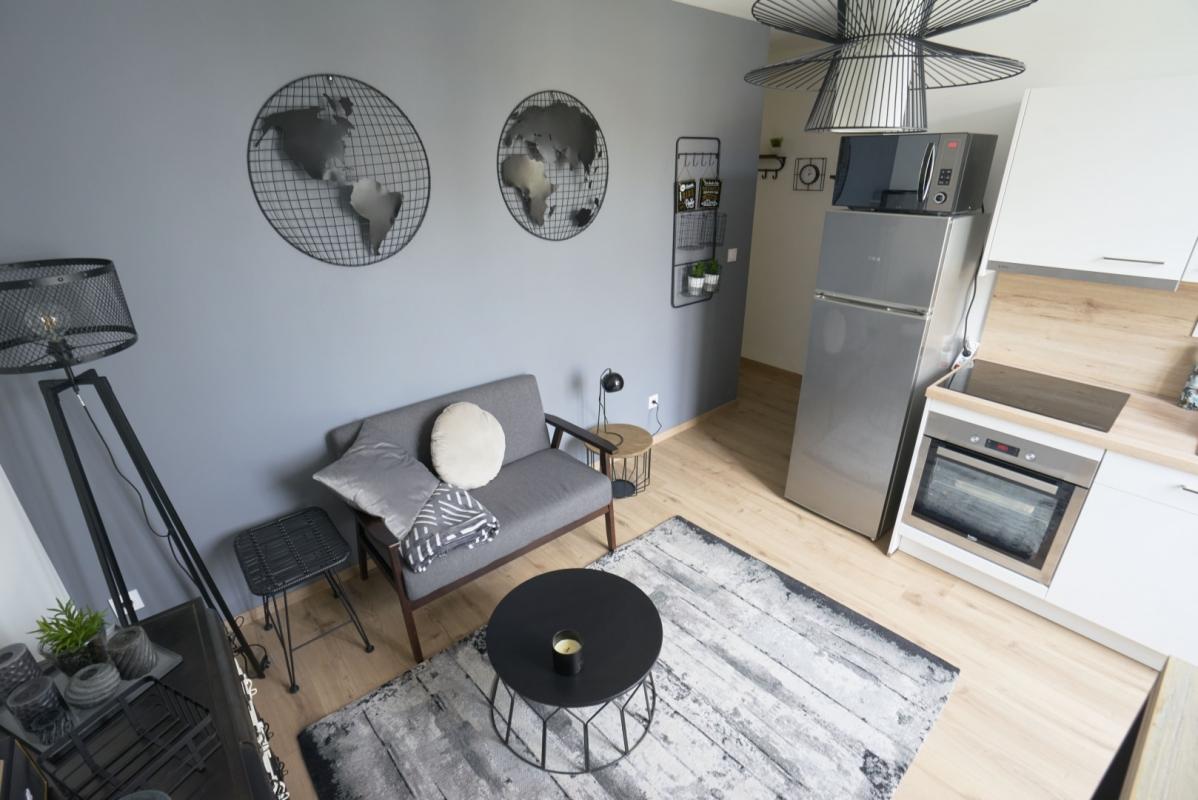 Salon et cuisine ouverts, meublés, équipés, décoration moderne et chaleureuse. Wifi dans toute la maison.