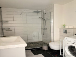 1 salle d'eau contemporaine avec douche, meuble vasque et WC et lave-linge