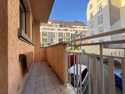 Situé au rez-de-chaussée d'une petite copropriété, l'appartement est agencé comme suit : une entrée, une cuisine, un grand salon de 24m2, deux chambres dont une de 21m2, une salle d'eau et un wc séparé.