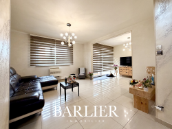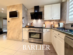 Une pièce de vie coup de coeur Dès l'entrée, vous serez séduit par les finitions soignées (murs en enduit texturé, carrelage grand format 60x60). La pièce de vie de 28 m2, particulièrement lumineuse, s'ouvre sur une cuisine contemporaine entièrement équipée. Les passionnés de cuisine apprécieront son piano de cuisson professionnel.