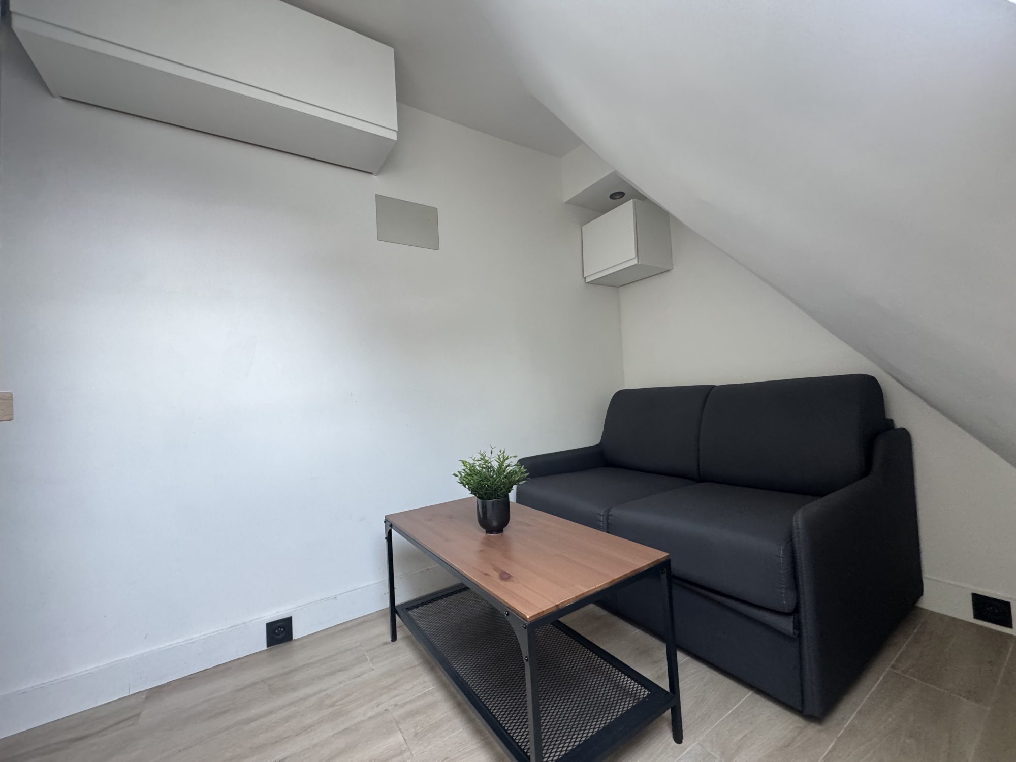 Rue du Temple, à deux pas de la place de la République, au dernier étage d'un immeuble ancien. Ce studio se compose d'une pièce principale, une kitchenette ouverte et une douche. Des WC sont disponible sur le palier. Emplacement idéal