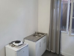 Studio 16m2 à 10mn à pied gare RER D Pierrefitte Stains commune St Denis comprenant 1 kitchenette et 1 frigo et 1 plaque électrique et 1 micro-onde et fenêtre double vitrage et chauffage électrique et 1 sdb séparée avec WC et meuble lavabo et douche et un jardin extérieur