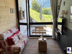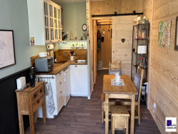 Studio / coin nuit comprenant un sas d'entrée, un coin nuit, une salle de douche et wc, un séjour, un coin cuisine, une terrasse Exposée Sud.