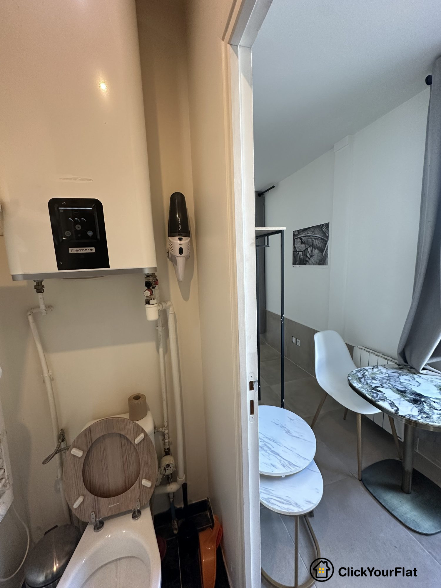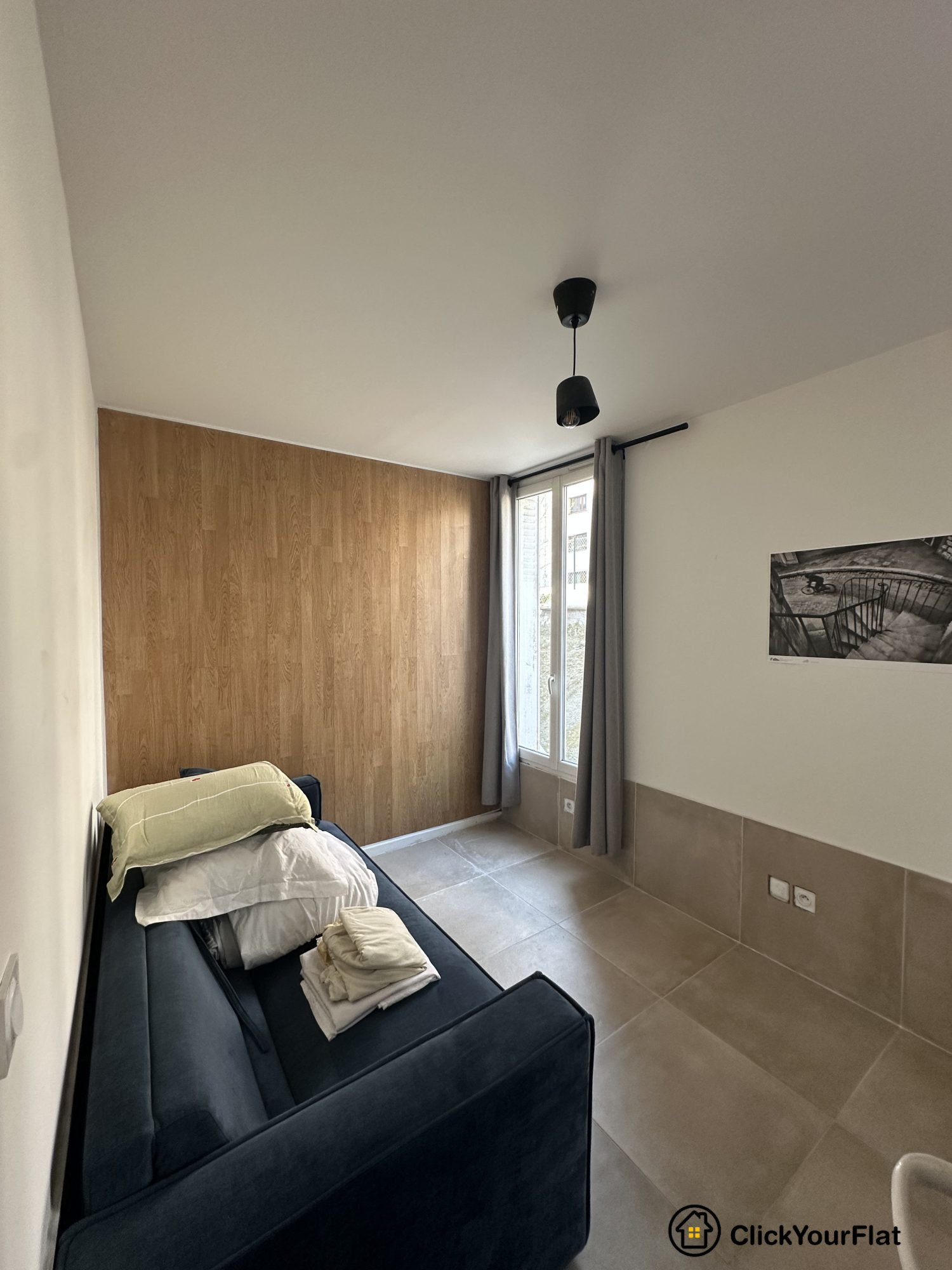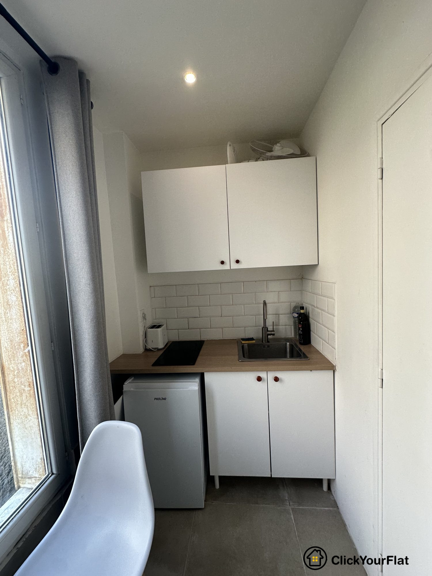 Studio au 2ème étage, comprenant : une entrée avec placards, une pièce principale au calme sur cour, une cuisine séparée et aménagée et une salle d'eau avec WC.