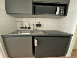 LA DEFENSE - FAUBOURG DE L'ARCHE Dans un immeuble sécurisé avec gardien, un studio meublé en exellent état au 2ème étage de 18m2 avec ascenseurs comprenant : une entrée, une kichenette aménagée et équipée, une pièce principale avec placards donnant sur un balcon, ainsi qu'une salle d'eau avec wc. Disponible immédiatement! Ce bien vous est présenté par l'immobilier Sans vis-à -vis.