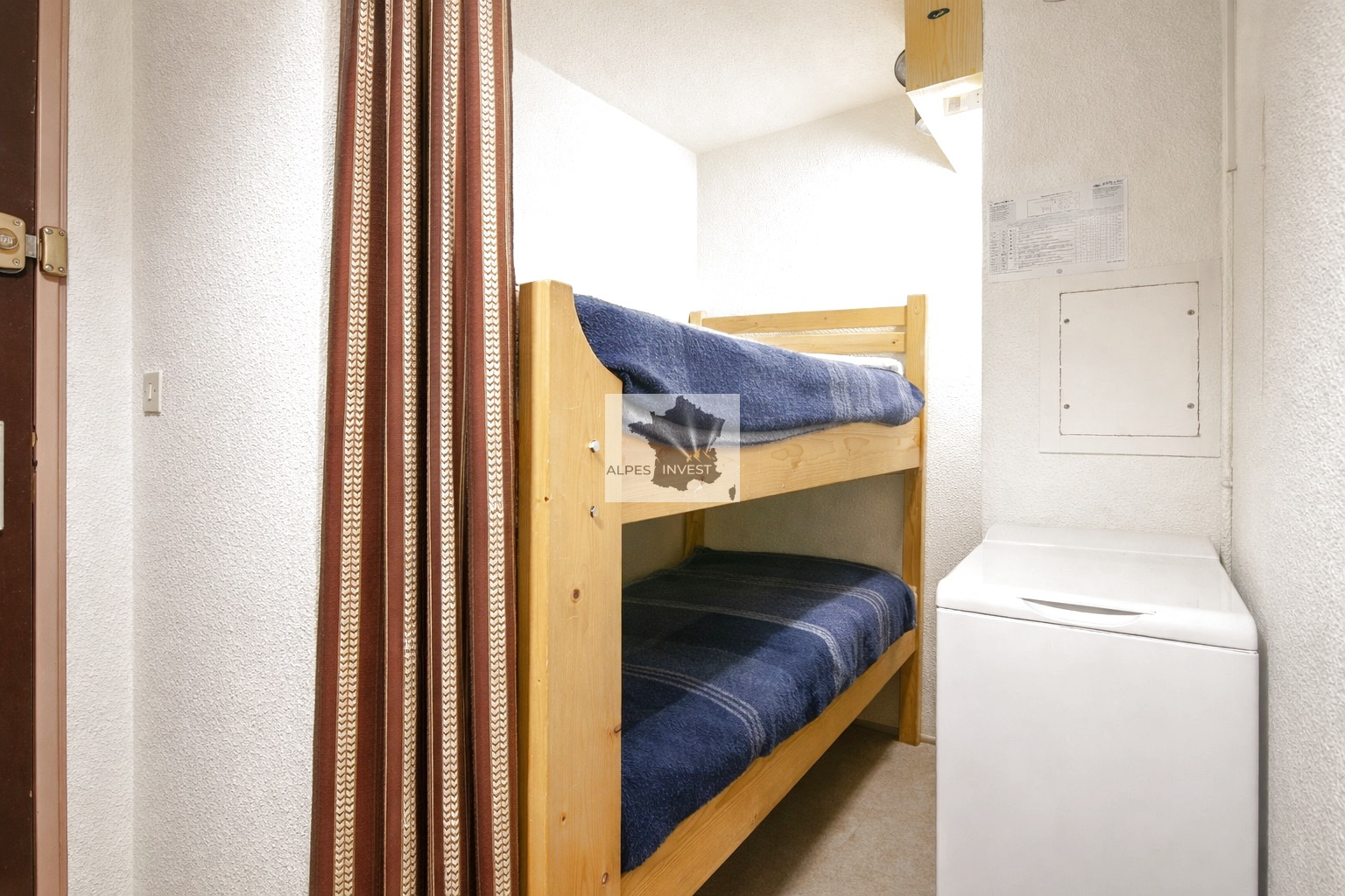 Ce studio est composé d'une entrée avec rangement (placard penderie). Une grande pièce de vie avec un kitchenette (2 plaques et placards). Une salle de douche avec vasque et emplacement machine à laver. Fenêtre en bois double vitrage - Chauffage individuel électrique.