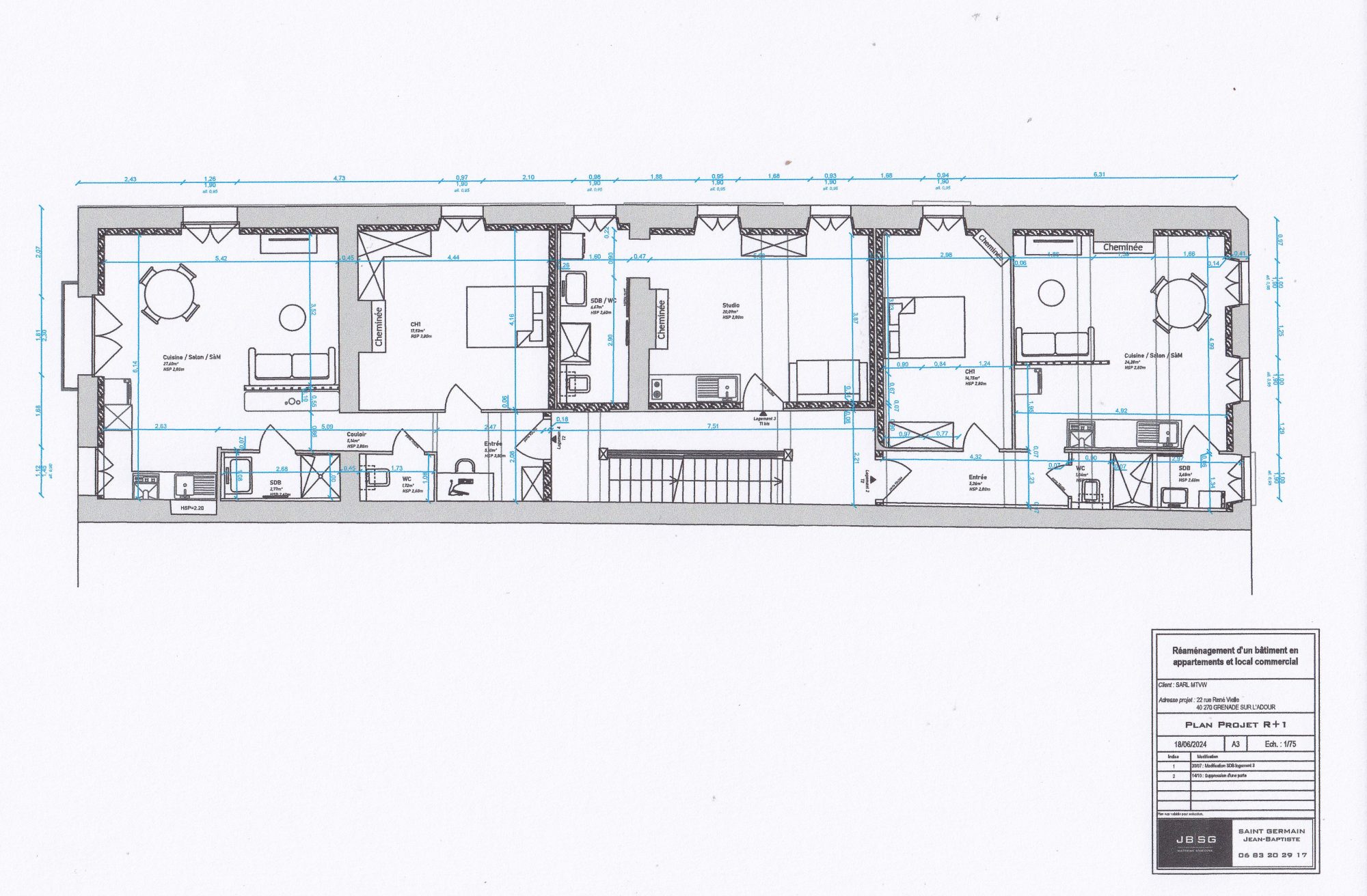 Le studio se situe au 1er étage et se compose comme suit : Une pièce de vie de 18m2 avec cuisine ouverte en option. Une salle d'eau d'environ 7m2 avec douche, meuble de salle de bains et WC non séparé. A noter : le studio est livré semi-fini notamment sans la cuisine au choix du client. Néanmoins, nous pouvons aussi vous proposer un studio entièrement fini avec vos finitions en vous mettant directement en relation avec nos artisans professionnels.