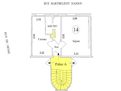 Au 4ème étage d'un immeuble ancien, un studio de 22,55 m² composé de :