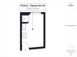 Ce studio offre une surface Carrez de 9 m². Il comprend une pièce principale intégrant une cuisine ouverte, et une douche. Les toilettes sont sur le palier et appartiennent à l'appartement (non partagées).