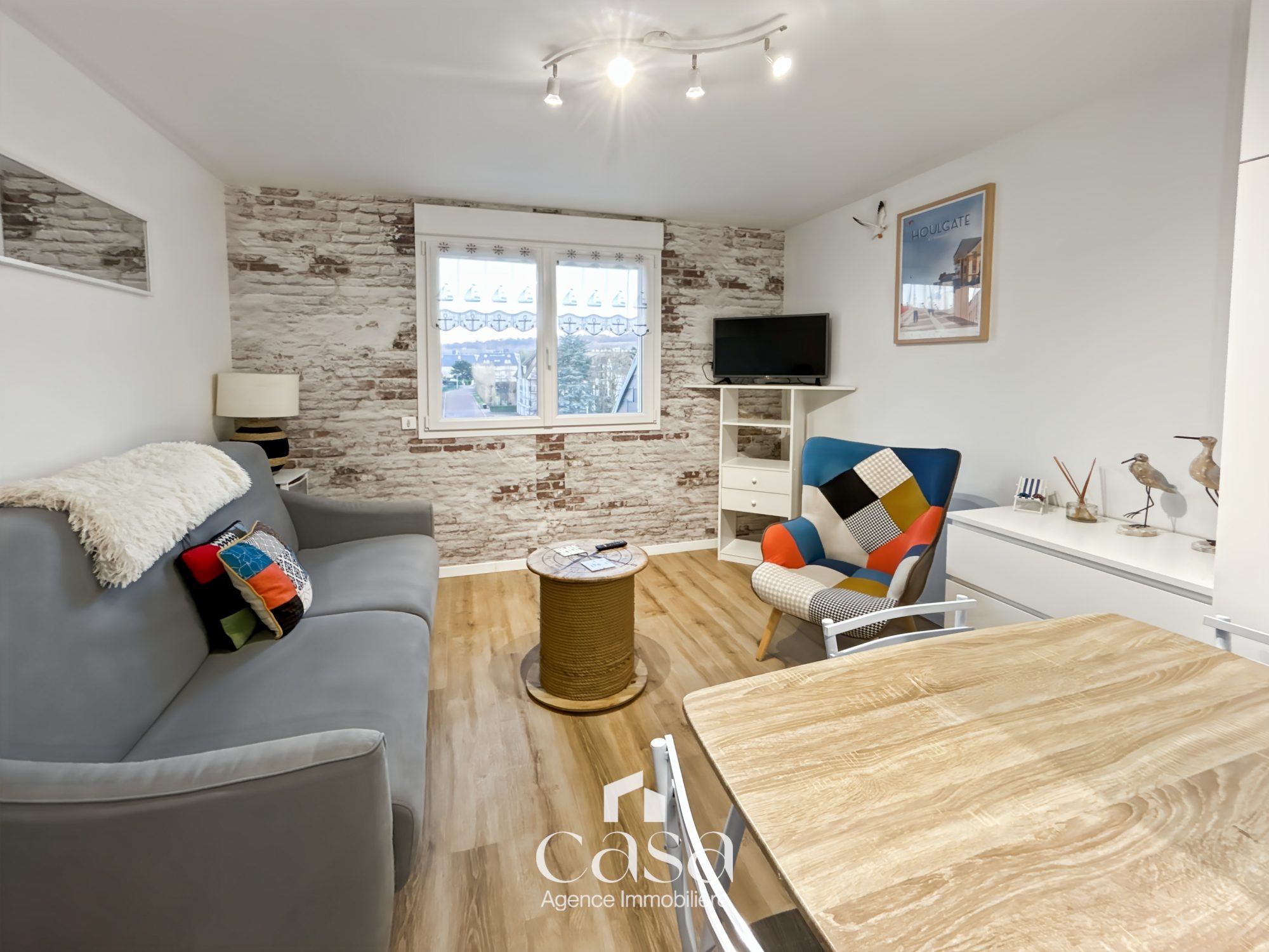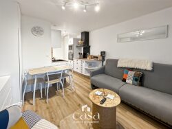 L'appartement offre un agencement pratique avec une entrée donnant sur un séjour lumineux, agrémenté d'une kitchenette fonctionnelle. Vous profiterez également d'une chambre cabine, une salle de bain avec WC et un petit balcon exposé sud-ouest, offrant une vue dégagée. Une place de parking est incluse.