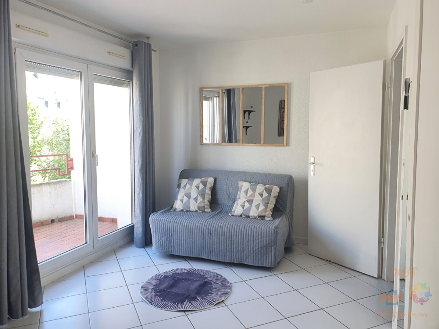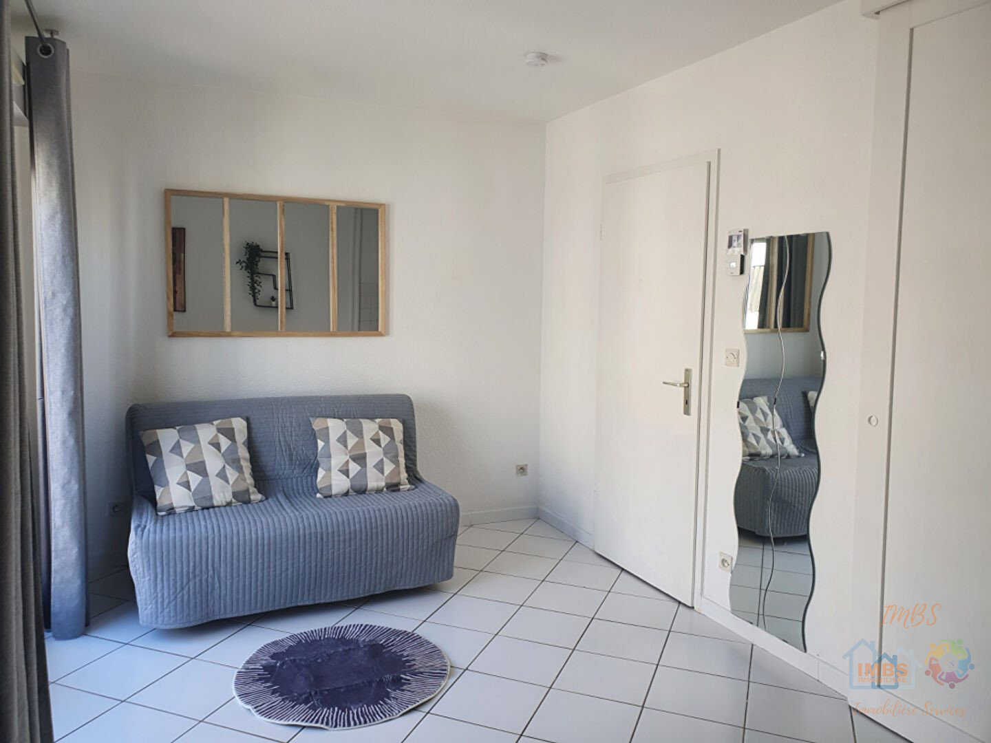 L'appartement se compose d'une entrée avec placard intégré, d'une cuisine équipée (réfrigérateur, micro-ondes, plaque, hotte, évier, meubles de rangement) ouverte sur la pièce de vie avec un accès au balcon de 5,55 m² et d'une salle d'eau avec WC.