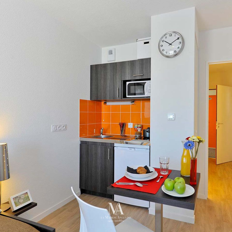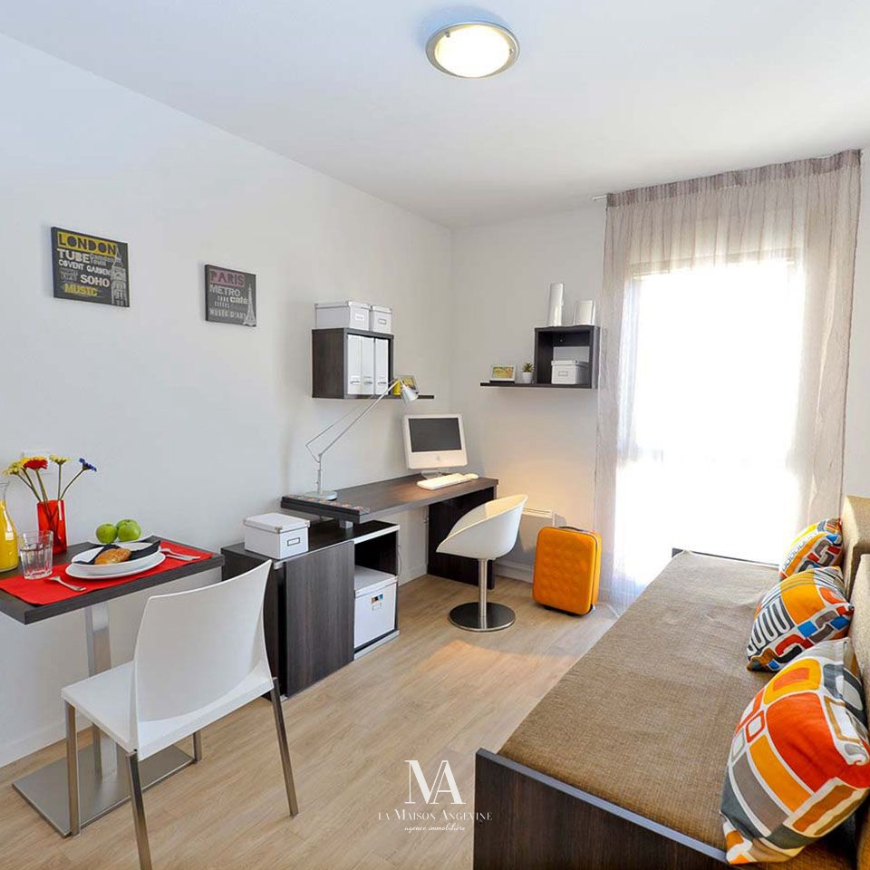 Appartement T1 49100 Angers quartier universitaire Découvrez ce charmant appartement T1 de 19,65 m² de surface habitable, niché au 3ème étage d'une résidence de 6 étages. Composé d'une pièce de vie principale avec Kitchenette, salle d'eau avec Wc et une entrée. Place de parking sécurisée
