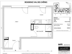Les prestations du logement : -Une entrée avec placard - Une cuisine meublée et équipée (plaques, hotte aspirante,) ouvert sur un séjour lumineux -Une salle de d'eau (douche, meuble sous vasque, miroir lumineux, wc)