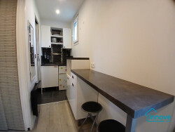 Ce studio, situé en rez-de-chaussée , vous offre une terrasse et un jardin sans vis-à-vis . Il se compose d'une cuisine aménagée et équipée, une salle d'eau, moderne et fonctionnelle avec W.C. Placard avec machine à laver intégrée complète ce logement pratique et bien agencé.