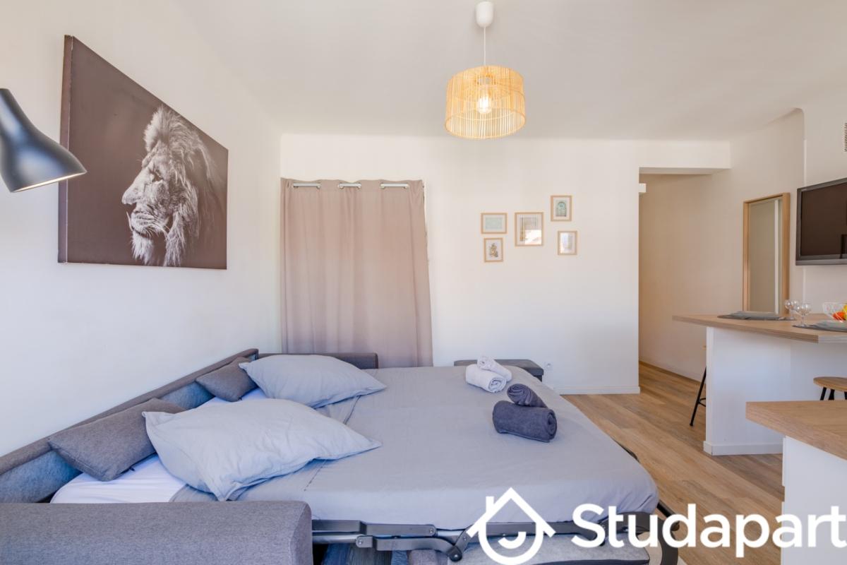 Bail mobilité de 1 à 10 mois. Appartement situé à deux pas des transports en communs et du centre ville.. Au 6eme étage avec ascenseur. Un appartement composé d'une pièce principale, une cuisine séparée meublée et équipée, une salle d'eau, et water-closet séparé. Une terrasse au du salon et de la cuisine.