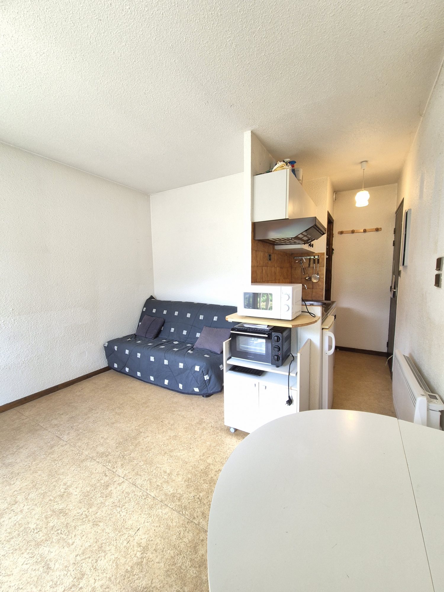 Le studio est en excellent état, avec des parties communes soignées et un stationnement extérieur inclus pour votre confort. Les portes à double vitrage assurent une isolation phonique et thermique optimale, tandis que la salle d'eau fonctionnelle complète ce bien déjà très attractif.