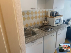 Au Couchant, studio d'environ 23m² avec loggia, au rez-de-chaussée d'une résidence proche de la mer et des commerces saisonniers. Comprenant une pièce de vie lumineuse ouvrant sur une loggia côté Ouest. Une cuisine aménagée, une salle d'eau, un toilette indépendant et un canapé convertible. Piscine collective.