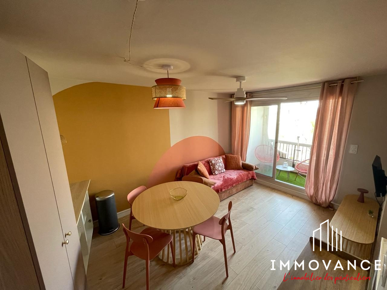 Le séjour lumineux s'ouvre sur une agréable terrasse, parfaite pour profiter des beaux jours et des soirées en extérieur.