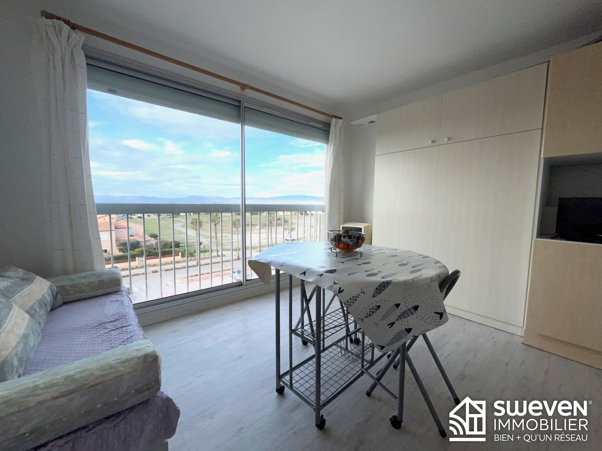 Studio cabine Rénové avec Vue Panoramique & Potentiel Mezzanine Barcares - Cap Coudalère Vivez au rythme du lac marin et des Pyrénées dans ce studio cabine rénové, situé au 3ème étage d'une résidence profitant d'une belle infrastructure à Port-Barcarès. Un intérieur soigné et évolutif Vendu entièrement meublé, cet appartement clé en main se compose :