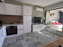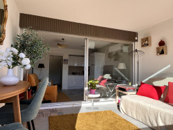 PORT CAMARGUE PLAGE NORD. Dans une belle résidence en première ligne, idéalement située en bord de mer et équipée d'un ascenseur, découvrez ce superbe studio cabine entièrement rénové, exposé SUD-EST et situé au 1er étage. Il se compose : d'une entrée avec cabine (lits superposés),d'une salle d'eau, d'un WC séparé, d'un séjour lumineux avec cuisine équipée. Vous profiterez également d'une agréable loggia fermée d'environ 10 m2, équipée d'une baie vitrée 3 vantaux en double vitrage, ainsi que d'un espace extérieur d'environ 4 m2. (Surface Carrez hors loggia : 22,88 m2) Confort assuré avec : o climatisation réversible o store banne électrique o volet roulant électrique Vue mer latérale depuis la loggia. Un cellier complète ce bien (env. 1,26 m2). Stationnement facilité grâce à un parking collectif sécurisé au sein d'une résidence fermée. ? Bien soumis au statut juridique de la copropriété Charges annuelles : 808 EUR Nombre de lots (principaux + secondaires) : 193 Taxe foncière : 664 EUR