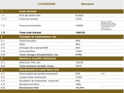 En exploitation courte durée et en se basant sur des données réalistes vous atteignez facilement 13% de rendement brut et + 400€ de cash-flow par mois !