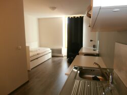 Situé au premier étage et d'une surface de 22 mètres carrés, il comprend un hall avec penderie, une pièce de séjour, une kitchenette équipée et une salle d'eau avec les toilettes. Chauffage d'utilisation individuelle électrique. Confortable et équipé de mobilier de base, il est loué avec les charges comprenant la fourniture de l'eau froide, chaude, électricité et la fibre.