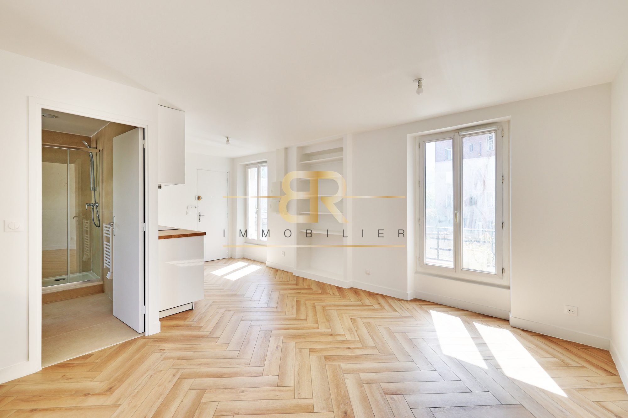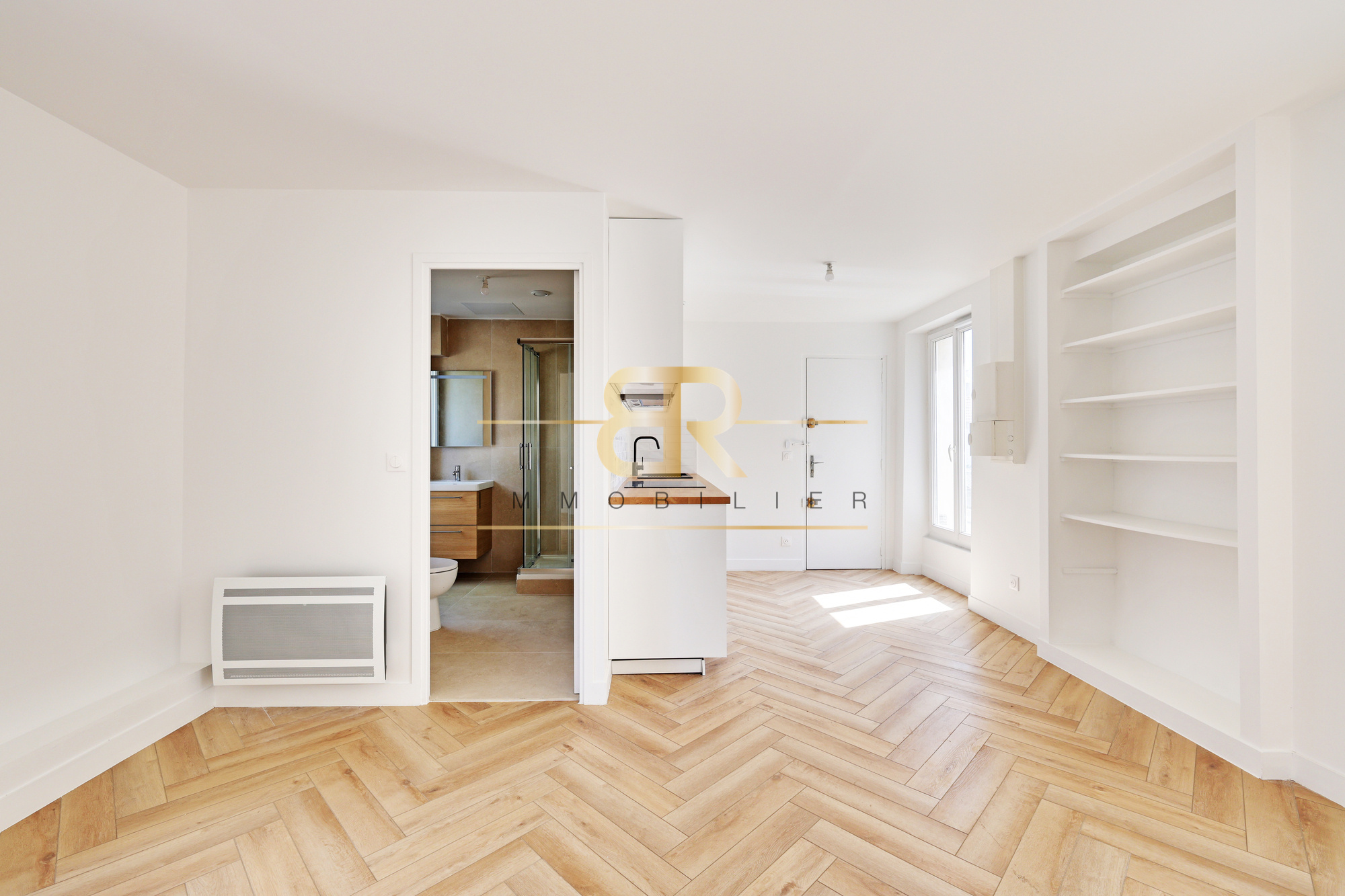 Studio loué 8mn RER-E balcon parking DPE D dernier étage