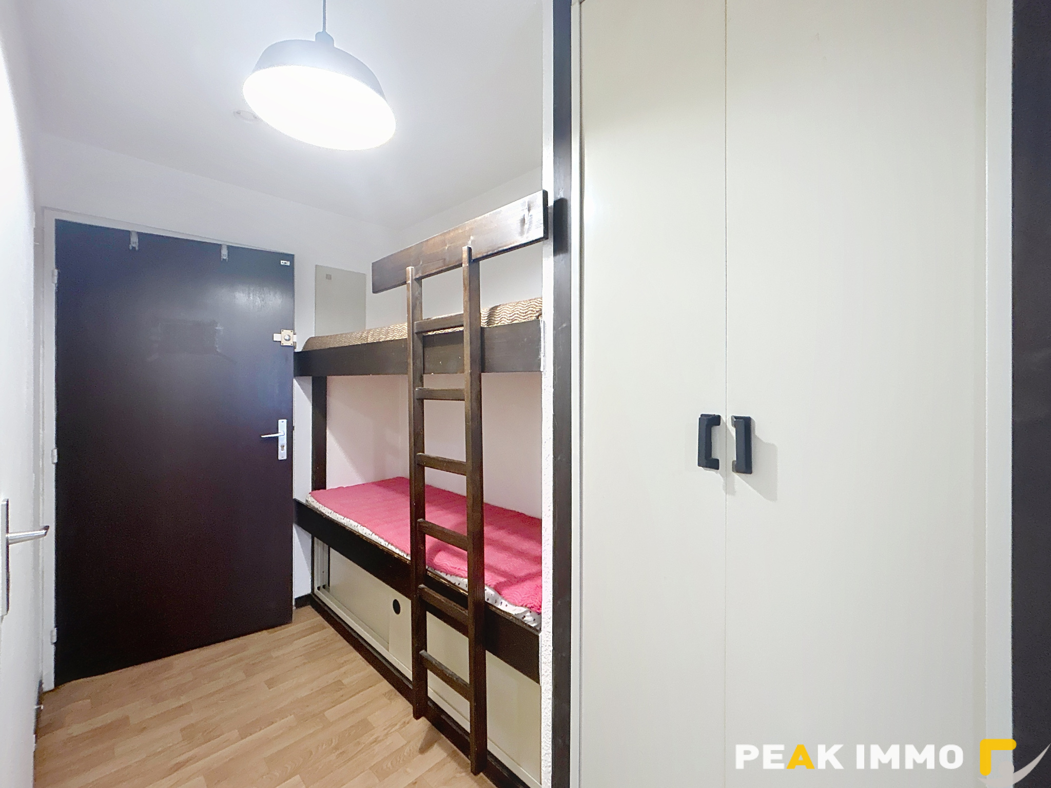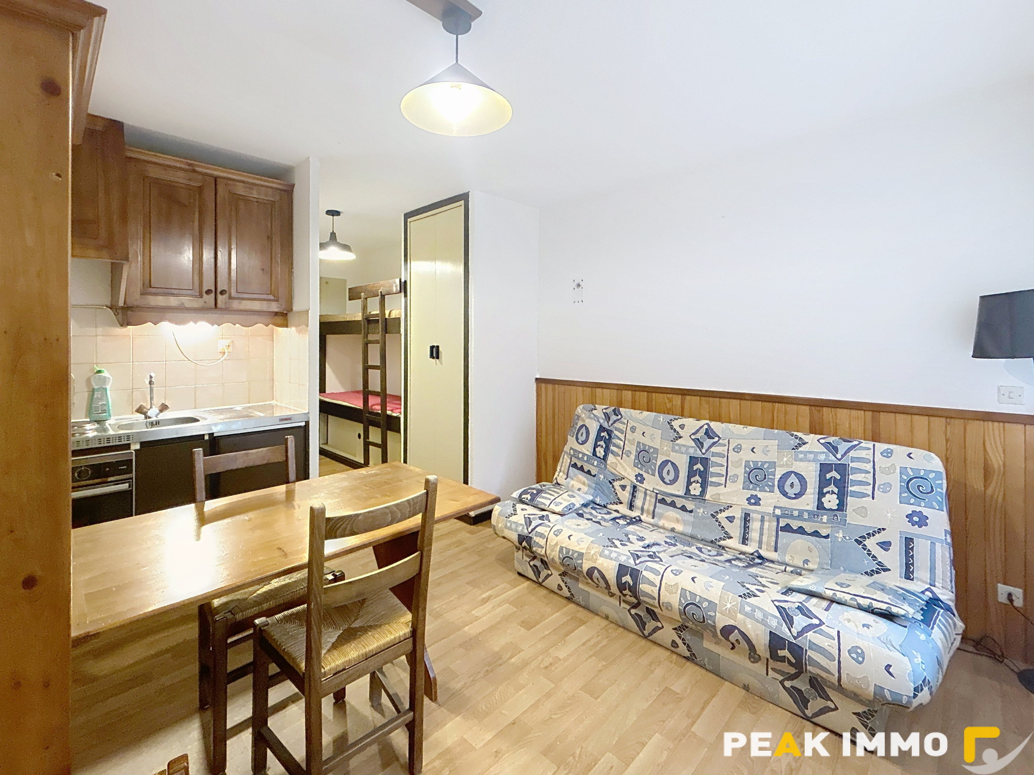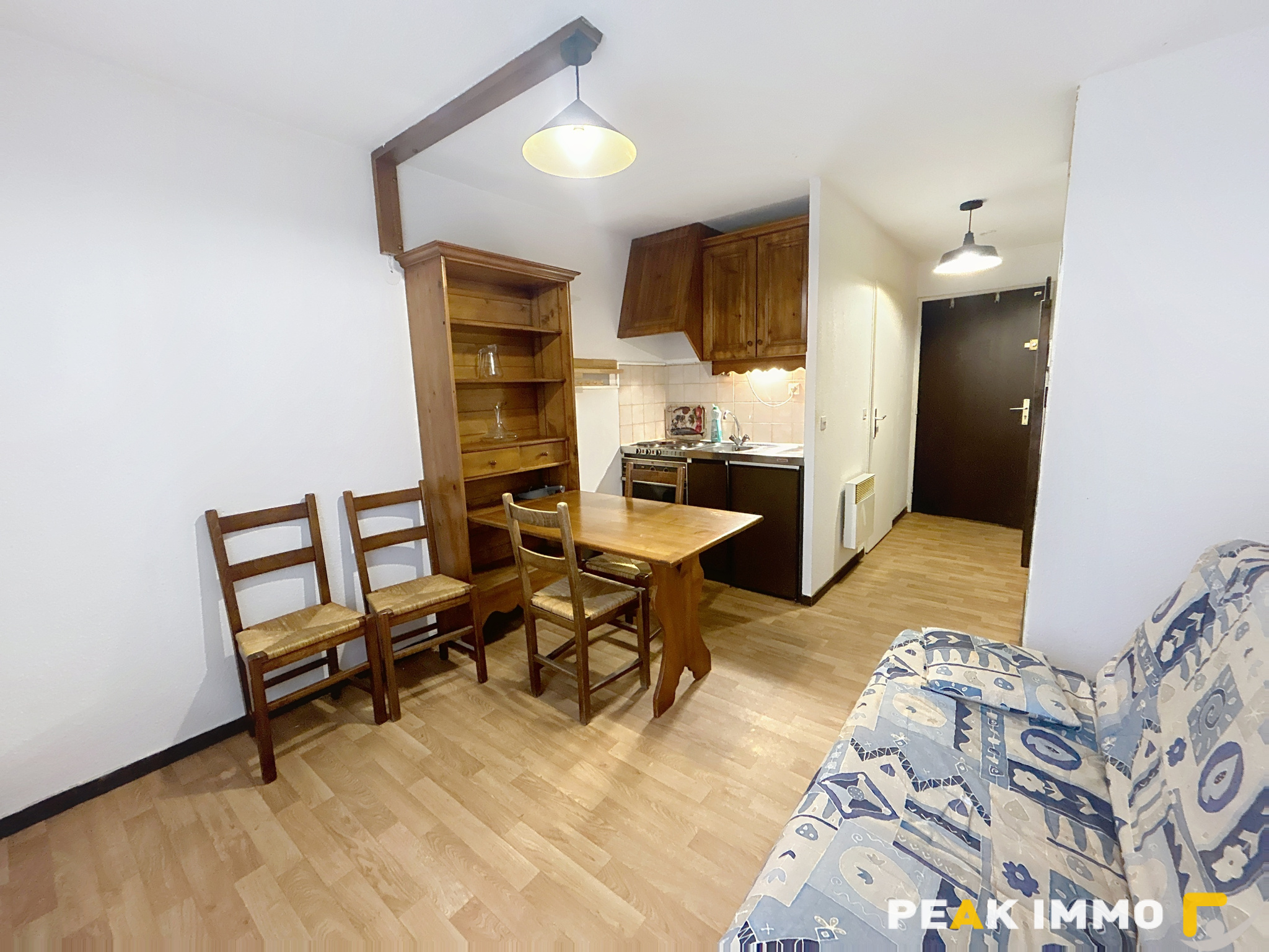Studio meublé de 14.54 m² au 1er étage, comprenant une pièce principale avec un coin cuisine équipée, une salle d'eau-wc. Un parking libre, chauffage individuel électrique.