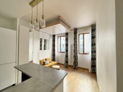 RUE CLAMART 92100 BOULOGNE-BILLANCOURT - À 6 minutes à pied des stations Marcel Sembat et Billancourt (métro ligne 9), dans un immeuble récent des années 2000, un studio meublé entièrement refait à neuf, en rez-de-chaussée, comprenant : une entrée avec rangements, une pièce principale équipée d'un lit escamotable au plafond, un coin cuisine aménagé et équipé d'un lave-vaisselle, d'un lave-linge et d'un four, et une salle d'eau avec WC. Un emplacement de parking complète ce bien.