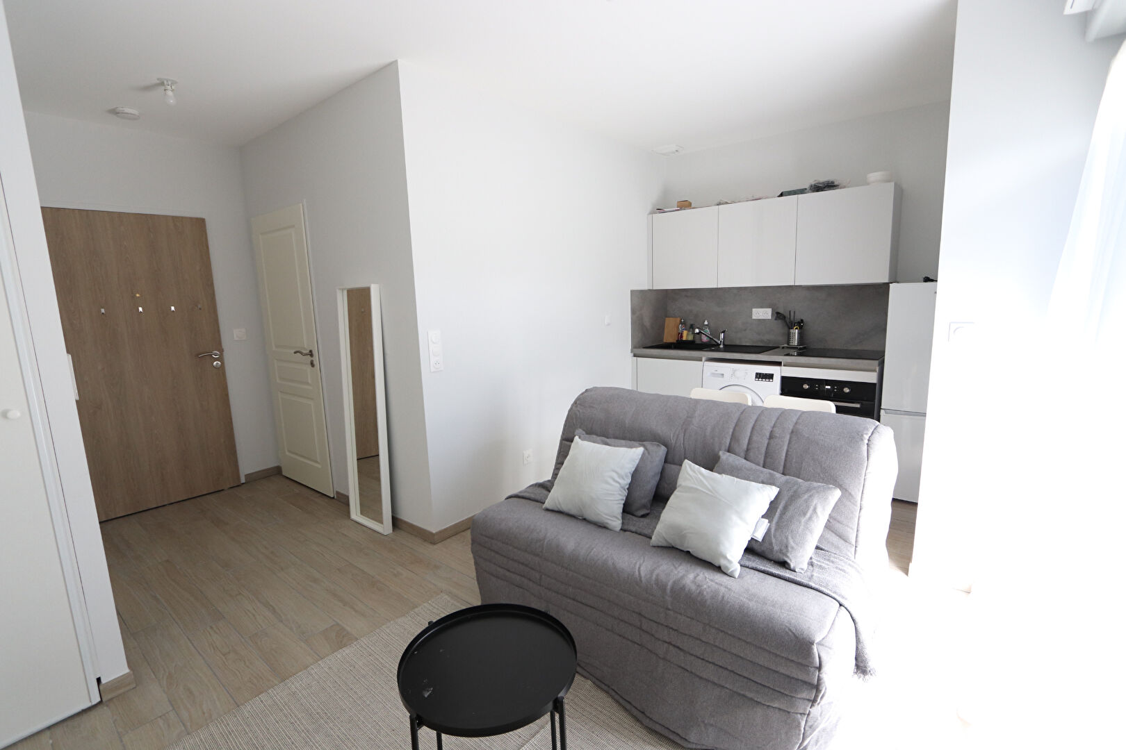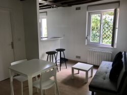 Orléans centre ancien, dans petite copropriété proche Cathédrale, beau studio d'environ 25m2 entièrement meublé avec goût, offrant cuisine aménagée et équipée ouverte sur la pièce principale, salle d'eau avec wc.