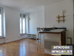 GRENOBLE - 18 rue Saint Jacques - Au coeur des rues piétonnes. Ce studio meublé de 27,97m² se situe au 4ème étage d'un immeuble sans ascenseur. Il se compose d'un coin cuisine ouvert et équipé (réfrigérateur, plaque de cuisson, hotte, lave-linge et ustensiles de cuisine), d'un séjour meublé (canapé/lit, table basse, table et chaises), d'une mezzanine avec matelas ainsi qu'une salle d'eau avec WC. Double vitrage PVC - Volets électriques - Chauffage, eau chaude et froide individuel. Disponible début Mai.