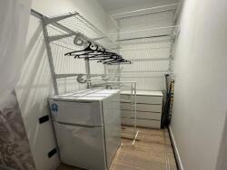 grand dressing séparé avec penderies, tiroirs, étagères.