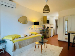 La Grande Motte, studio en location annuelle meublée. Situé à proximité du centre ville, des plages et des commerces, l'appartement est situé au 1er étage sans vis-à-vis et vue sur des espaces verts. En excellent état et très bien aménagé. Double vitrage, volet roulant électrique, chauffage collectif et cliimatisation réversible. Notre agence se tient à votre disposition pour toute information complémentaire. LES PYRAMIDES IMMOBILIER - 277 ave Robert Fages - CC Le Miramar - La Grande Motte.