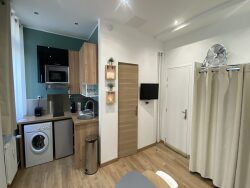 A quelques mètres de la gare, un appartement meublé de 20 m² au rez de chaussée comprenant une pièce principale avec coin cuisine équipée et une salle de bains avec WC. Disponible début août.