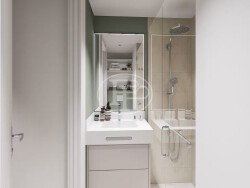 Hall d'entrée desservant une salle-de-bains avec baignoire et douche, un WC séparé. Une belle pièce de vie avec kitchenette et accès à un balcon.