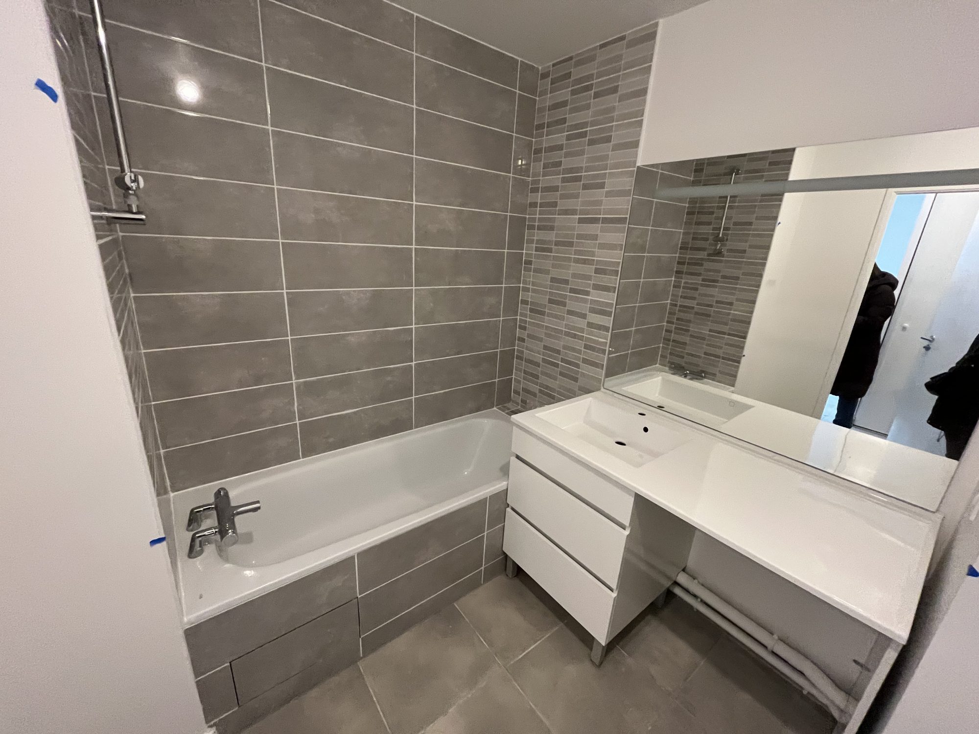 -Une entrée -Une cuisine meublée et équipée (plaque vitrocéramique, hotte électrique, réfrigérateur) - un séjour lumineux -Une salle de bain (baignoire, meuble sous vasque, miroir, wc)