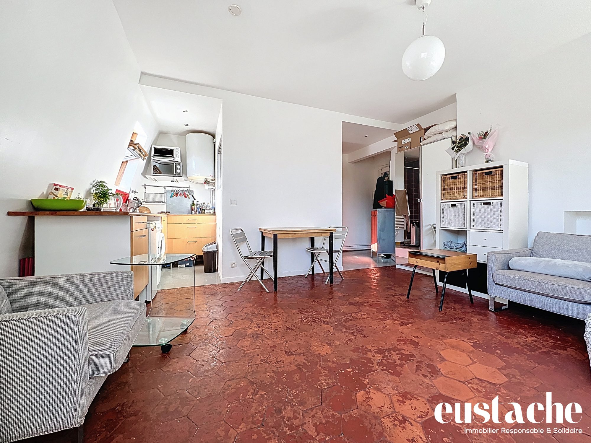 Le bien se compose d'une entrée qui desservant une pièce de vie lumineuse, avec une cuisine ouverte équipée, un coin nuit et une salle d'eau avec WC.