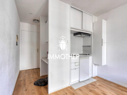 Immothep vous présente un charmant studio entièrement rénové en 2022 dans le secteur Ampère/Berriat à Grenoble. Idéal pour une personne seule ou pour un investissement locatif, sa superficie habitable est de 18,71m2. Situé dans un quartier animé, vous y trouverez divers commerces de proximité, des restaurants, la chambre des métiers, une salle de concert. Le quartier est desservi en transports en commun (bus et tramways). Le studio se compose d'une d'une entrée avec un espace burean aménagé, d'une pièce de vie avec cuisine, d'une salle d'eau incluant une douche et un toilette. A cela s'ajoute un balcon de 3m2 et une cave.